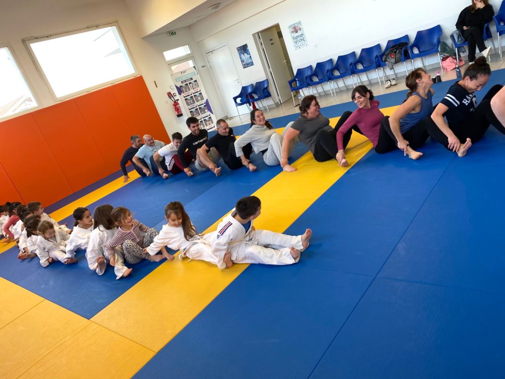 Le mercredi 18.12.24, les éveils ont fait cours commun et les parents ont été invités à monter sur le tatami.